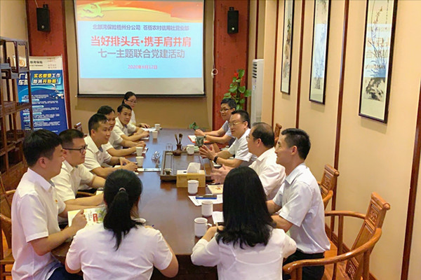 为更好的聚焦银保业务,携手共赢,奋力争当国资国企改革发展的“排头兵”,6月12日,金投集团梧州分公司苍梧中心党支部、北部湾保险梧州分公司党支部、苍梧县农村信用合作联社营业部党支部联合举办了“当好排头兵·携手肩并肩”七一主题党建活动,以党建助推业务发展。