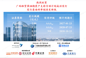 企业动态 | 广西租赁AA+主体评级后首单ABS成功发行,票面利率创历史新低