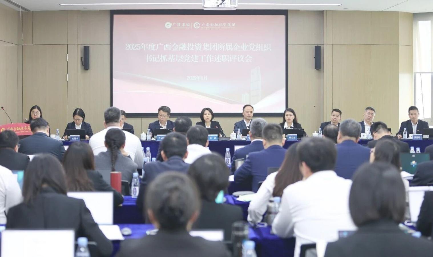 1月16日,金投集团召开2025年度所属企业党组织书记抓基层党建工作述职评议会。会议紧紧围绕深入学习贯彻习近平新时代中国特色社会主义思想、增强基层党组织政治功能和组织功能、落实基层党建“十个一”要求、推进基层党建“五基三化”巩固年行动、履行党组织书记抓基层党建第一责任人职责等内容,组织所属企业党组织书记全面总结工作、深入查摆问题、明确改进思路,以更大力度推动基层党建工作实现新突破。集团党委书记、董事长彭湖出席会议并讲话,集团领导班子成员参加会议。广投集团党群工作部副部长许启新到会指导。